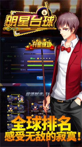 作为一款专为台球爱好者打造的竞技手游,明星台球免费版通过创新的2D物理引擎技术,精准复刻现实中的8球规则与击球手感。玩家可选择与全球在线玩家实时对战,或通过人机模式磨练技巧。游戏采用划屏操作设计,指尖轻触即可调整击球角度与力度,搭配逼真的碰撞反馈效果,让新手也能快速沉浸于台球竞技的乐趣中。