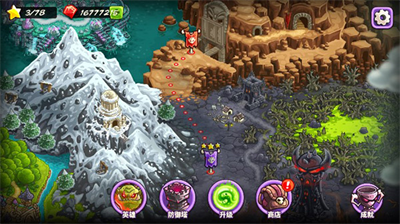 本作在保留经典操作的基础上,创新加入三大主题战役与动态战场系统。维京冰原的暴风雪会减缓行军速度,矮人地城的岩浆裂隙需要精准布防,9位特色英雄各自携带专属技能树,配合防御塔的36种进阶形态,形成超过200种战术组合。