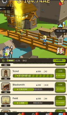 3、建筑升级体系:茅草屋升级石砌城堡,露天市集改建室内商场