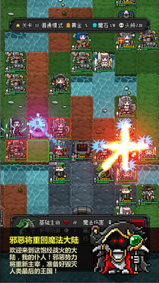 像素战棋经典像素征服之路是一款融合策略与冒险的像素风战棋手游。玩家将化身魔族领袖,带领残存部族展开绝地反击,通过精密布局逐步瓦解人类王国防线。独特复古像素美术搭配多变的棋盘战场,呈现极具沉浸感的战略世界。超过30种特色兵种与上百种技能组合,配合地形气候系统,构建出无限可能的战术维度。