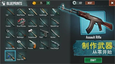 2、战术成型期:解锁远程武器制造,搭建初级防御工事,规划安全行动路线