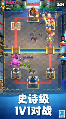 皇室战争国际服策略对战全球玩家是一款融合即时战略与卡牌竞技的全球化手游。玩家将在三分钟一局的快节奏对战中,与全球真实玩家展开1v1或2v2的智慧交锋。游戏独创的卡牌系统包含上百种特色单位,从冲锋陷阵的王子到扭转战局的雷电法术,每张卡牌都需精准计算圣水消耗与释放时机。通过组建专属卡组参与天梯竞技,玩家可逐步解锁新卡牌并晋级更高级别竞技场,体验策略深度与操作技巧的双重考验。