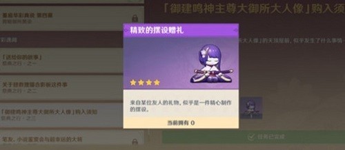 3:获得人偶后需前往天守阁与雷电将军交互。完成指定对话选项即可解锁尘歌壶专属装饰道具,该物品属于场景布置类资源,需进入家园系统方可查看使用