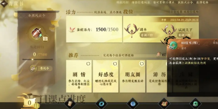 入口指引:在游戏主界面右上角地图标识旁,点击形似书册的独立图标即可进入青崖书界面。该界面采用模块化设计,直观展示当日可完成的任务类型与进度状态。